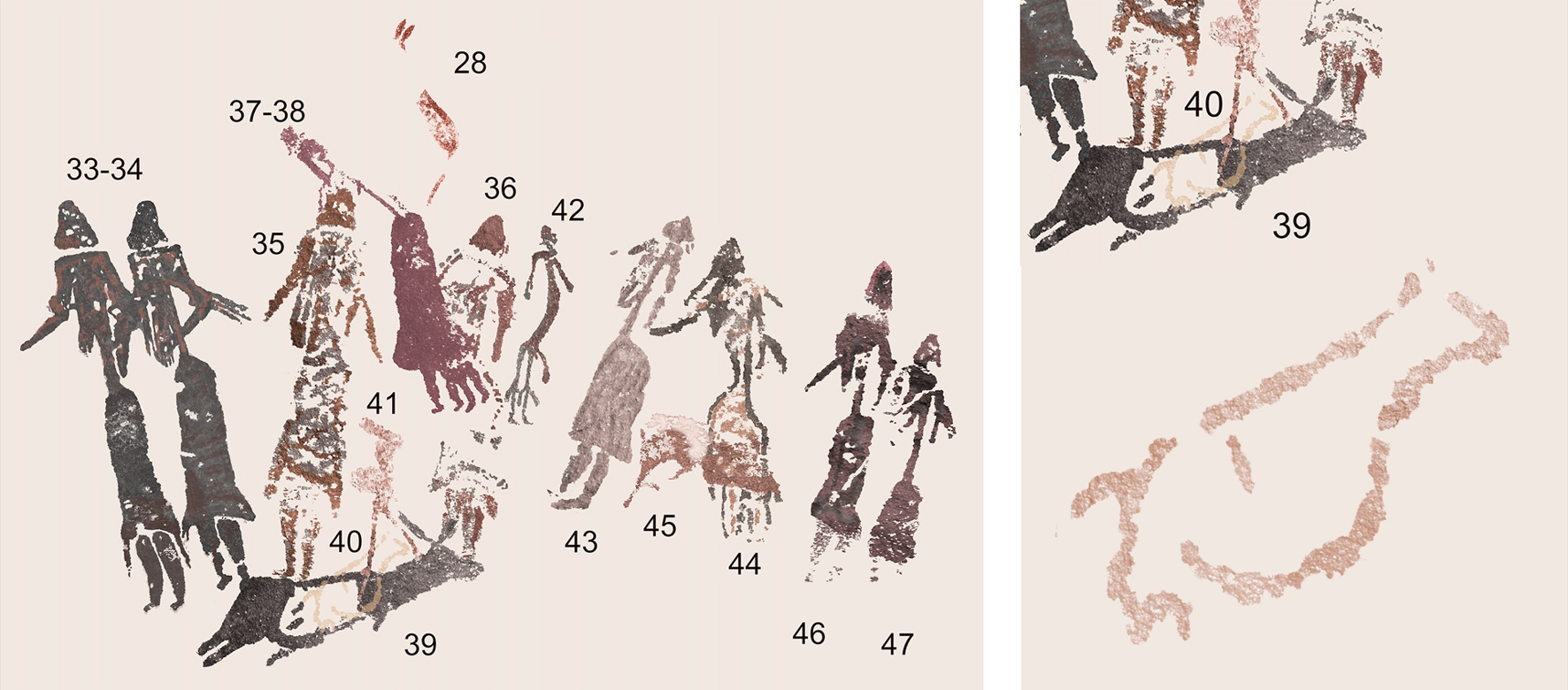 Reproducción digital de las pinturas. Dibujo de A. Rubio y R. Viñas, 2020.