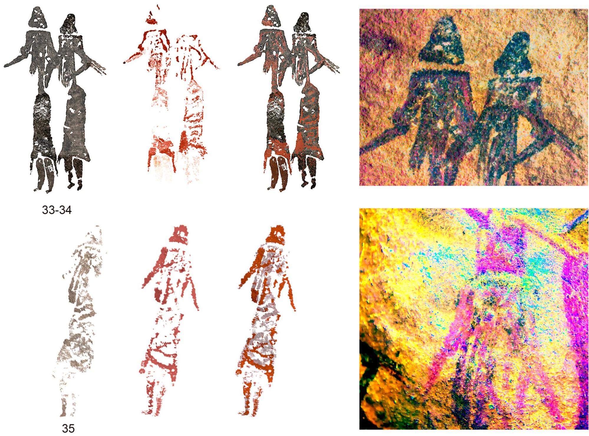 Por otro lado, se han documentado los procedimientos técnicos empleados en la ejecución de las figuras, las superposiciones, los repintes, las restauraciones y las combinaciones cromáticas.