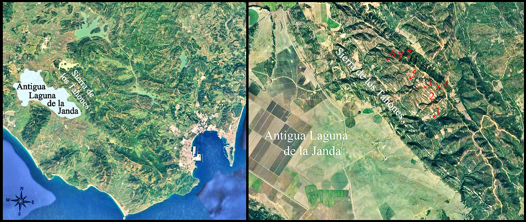 En la sierra de los Tahones (Medina Sidonia, Cádiz), dentro del entorno de la extinta Laguna de la Janda, sobresale un grupo de estaciones por sus composiciones pictóricas. Estos lienzos se configuran con una iconografía específica de antropomorfos bitriangulares y halteriformes de brazos alzados, no presentes en el resto de cavidades con Arte Rupestre Esquemático[1] del extremo sur peninsular. El protagonismo que adquiere la figura humana sugiere unas composiciones de temática meramente social que podría interpretarse como la representación de eventos comunitarios. Sus diferentes autores, motivados por un sentido de pertenencia y la conciencia de formar parte de un colectivo, dibujaron costumbres y creencias que les eran afines. El análisis de estas composiciones nos permite profundizar en aspectos ideológicos de la identidad colectiva de una comunidad estable, con evolución cultural y complejidad social vinculada al hábitad de la Laguna de la Janda.