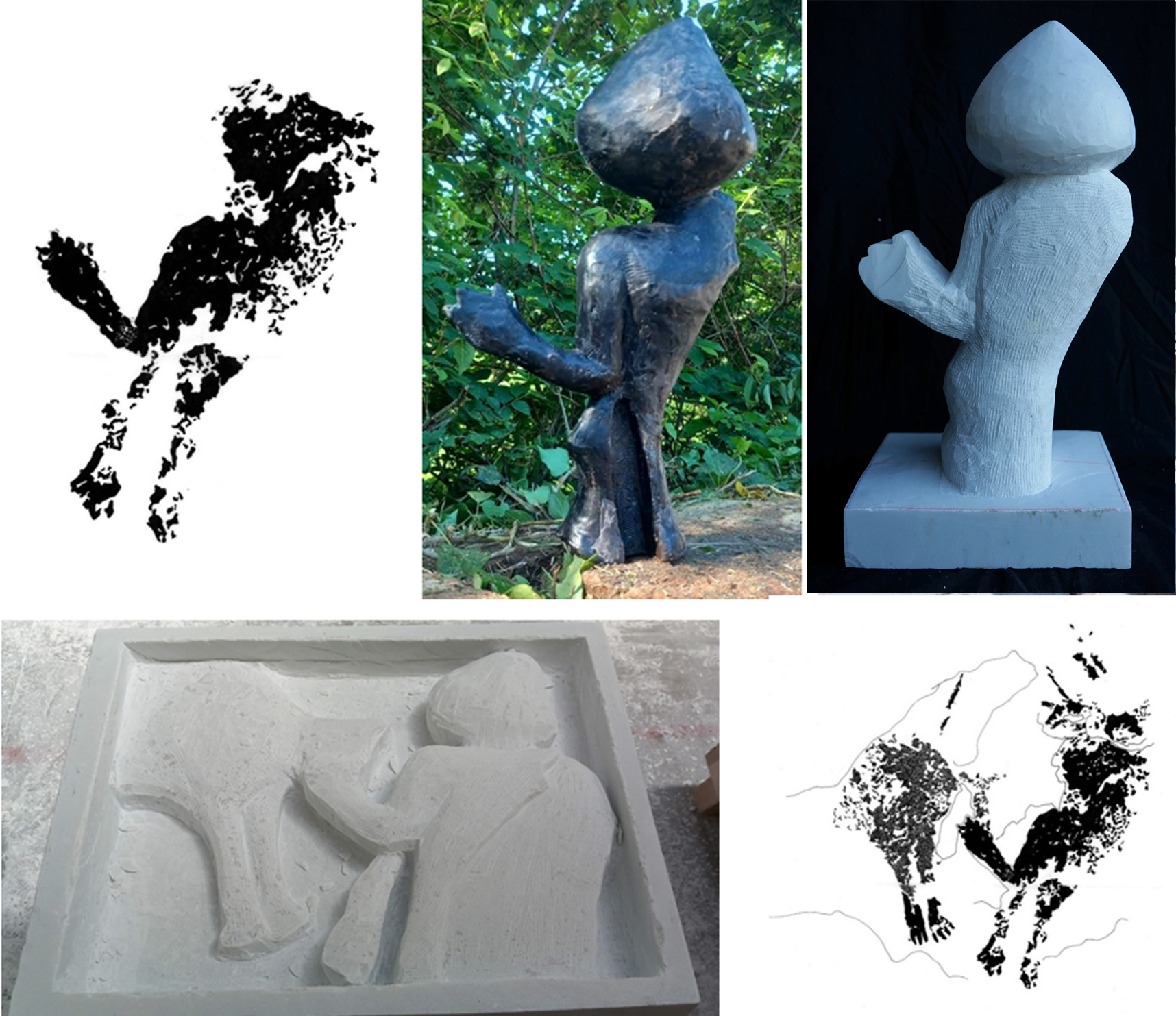Generar la interpretación artística tridimensional a través de la escultura manual. Una vez ejecutados los pasos anteriores, se genera el volumen tridimensional de dichas figuras de forma tradicional.